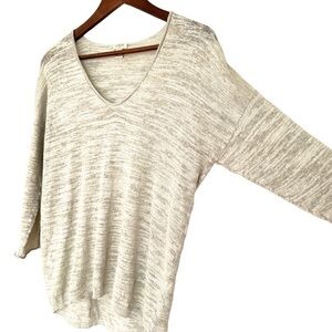J. Crew sweater with v-neck, 3/4 length sleeves, high-low hem, linen blend knit.