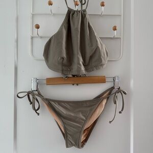 J Crew taupe green gray halter neck bikini top and bottoms set - size XS - Small