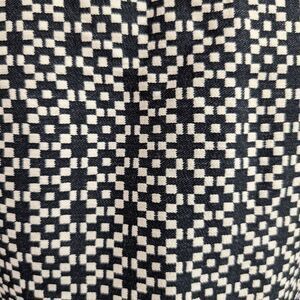 This unique stunning dress is perfect for a cocktail party or for work. Perfectly tailored for a super flattering look Black and cream in color. Paneled geometric print dress. Fully lined.