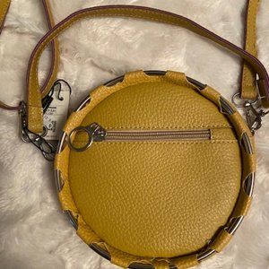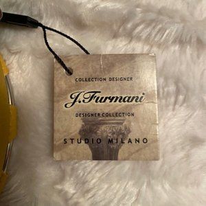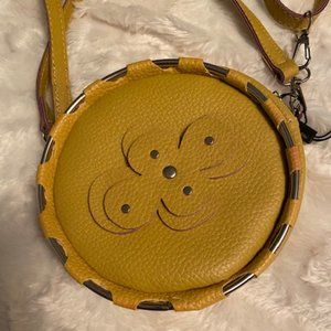 J. Furmani Studio Milano circular purse in faux leather. The purse has straps - one shoulder length and one for a hand bag. Small purse with zipper compartment on one side. Inside also has a small zipper compartment and a small pocket. I have categorized this as a child's purse, due to its size. Could also be an adult purse, but it doesn't hold very much. Colour depends on screen settings and lighting in pictures. All measurements are approximate and may slightly vary. All items are from my smoke free home.