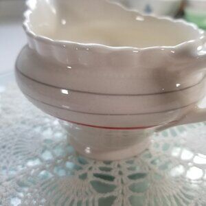 J & G Meakin Creamer by Sol 39143 White with Red and Silver Stripes Vintage