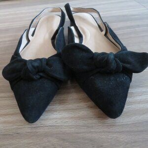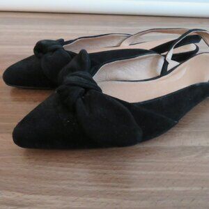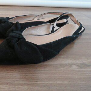 J. JILL Camille Slingback Bow Flats Shoes in Black Suede Leather - Size US 8.5