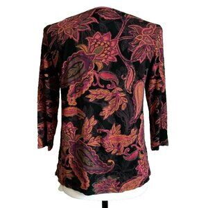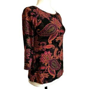 J JILL Wearever Collection Stretch Top Blouse Womens XS Petite Black Paisley