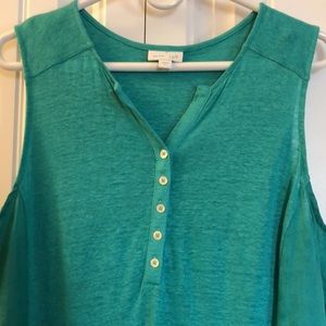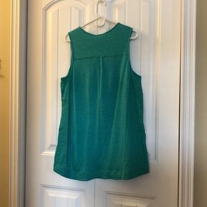 Ladies top from J JILL made of 100% linen .This top is a beautiful green .It can be worn with a nice pair of dress pants, shorts or even leggings.Dress it up with some accessories and I am sure you will feel like going out on the town.