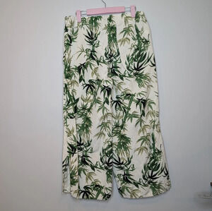 J Jill Cream Tropical Leaf Plant Patterned Linen Blend Wide Leg Pants Women S