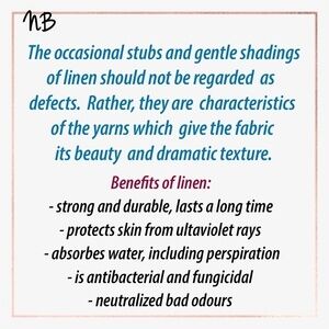 **PLEASE NOTE** What may appear to be pilling throughout the textile is only the natural texture of the linen yarns. Please see slide above regarding the nature of 100% linen. This shirt is new, and never worn.