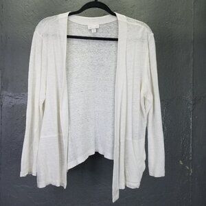 J. Jill Love Linen Cardigan Women's Petite L Sweater Open Front White Pockets