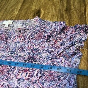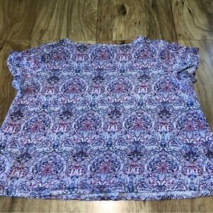 J Jill Love Linen Short Sleeve T Shirt Pink Purple Bohemian Pattern Size 1X Crop