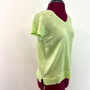 J. Jill Love Linen V-Neck Top Shirt Lime Mint Green XS Petite T-shirt
