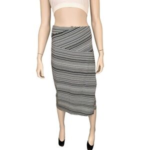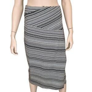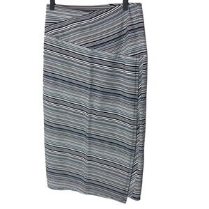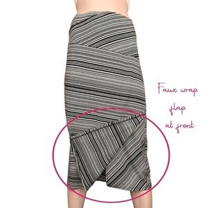 J. Jill Pencil Shirt Stripe Cotton Rayon Stretch Knit Faux Wrap Banded Tummy