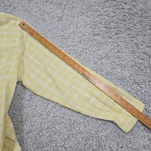 J Jill Shirt Women 2X Yellow White Plaid Button Roll Tab Sleeve Beachy Coastal
