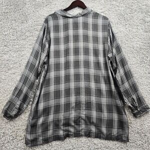 J Jill Shirt Womens XL Gray Tunic Plaid Embroidered Pullover Long Sleeve New