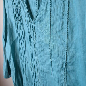 J Jill Size M Pintuck Pleat Tunic Top Half Sleeve 100% Linen Shirt Blouse Long