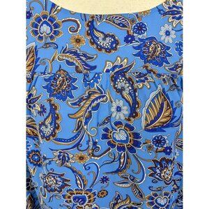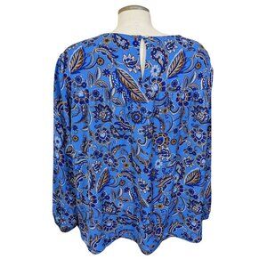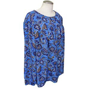 J Jill Wearever Womens Plus 2X Blue Floral Paisley Peasant Top Blouse Shirt