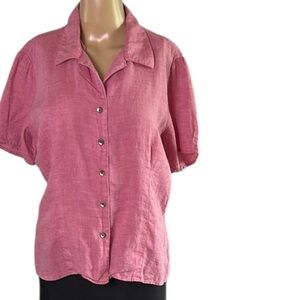 J Jill linen red shirt,oversized, Med , (L,XL)garden girl,, PTP 20”, Length 23”