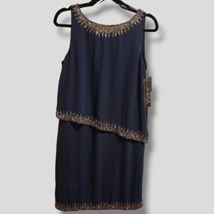 NWT Women's beaded sleeveless cocktail dress, 10P. Navy blue with silver beads. Comes with a small packet of extra beads.