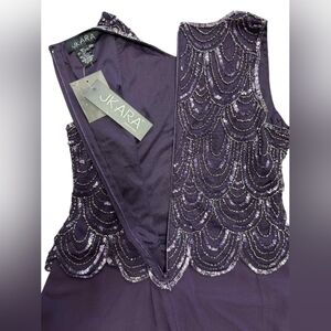 J Kara NWT Dress Plum Formal Gown Beaded Sleeveless Flowing Maxi Size 8P