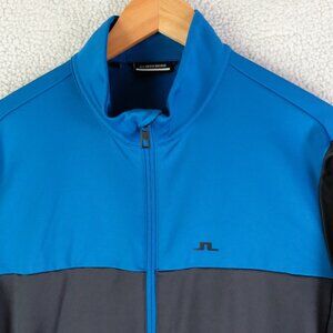 J Lindeberg Jacket Mens Large Blue Black Bomber Golf Full Zip Lightweight Logo