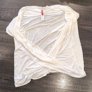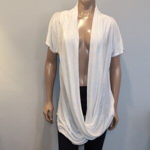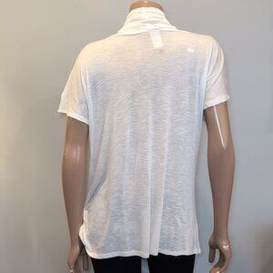 J MODE Draped Blouse Short Sleeve Crossover Semi Sheer Shawl Collar Plus Size