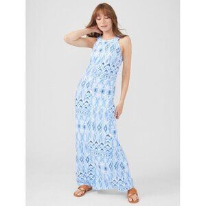 J McLaughlin Edie Maxi Dress Women Medium Blue Halter Neck Catalina Cloth Resort