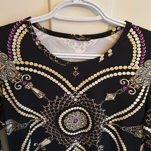 J. McLaughlin Jewel Pattern black size M stretchy top. Very comfortable. Three-quarter sleeves.