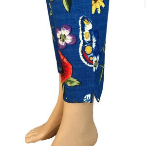 J. McLaughlin Margot Pants Size 6 Blue Floral Butterfly Print Slim