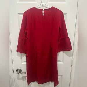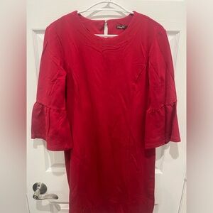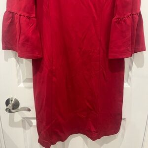 J. McLaughlin Red Shift Dress Ruffle Bell Sleeves Large Valentines Party Career
