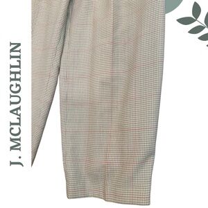 Elevate your wardrobe with these stunning J. McLaughlin high-waisted wide-leg trousers, perfect for a polished office look or chic weekend style. These timeless pants feature a classic neutral mini-check pattern in ivory, beige, and faint pink, made from a soft wool-blend fabric with full lining for comfort and structure. The flattering pleated front and tailored silhouette make these a wardrobe staple.