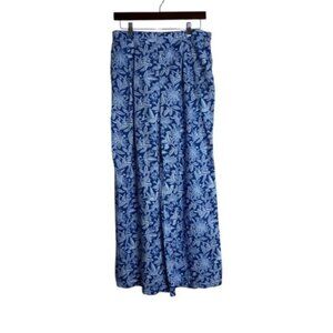 Stylish blue white floral pants perfect for any occasion. Comfortable and chic, these pants are a must-have addition to your wardrobe. Features pockets and elastic pull on waist. Lightweight.
