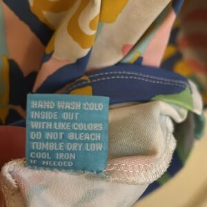 J. McLaughlin luxe pink, blue, green, yellow & white symmetrical top, size M