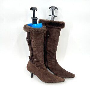 J. Renee Y2K Suede Fur Lined Pointy Boots