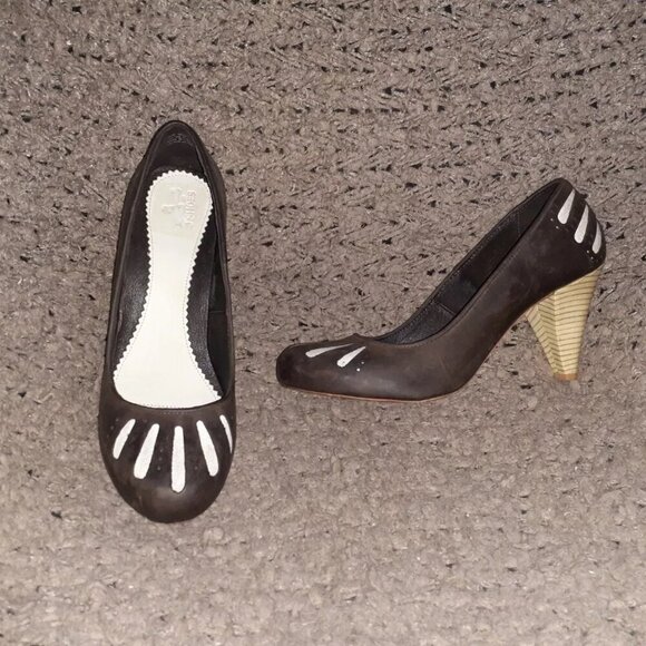 J SHOES-Fever-Brown Leather-Cream Canvas Cutout Pump-Pin-Up-Sz 9-Near Mint