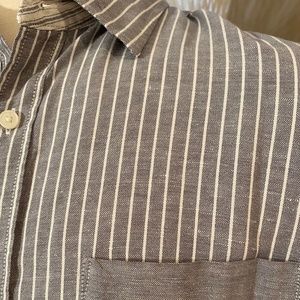 JW Anderson and Uniqlo collaboration mens button down shirt Sz XL. Grey and white stripes with contrasting arms. Oversized fit. Care and material tag has been removed but I would guess it’s a cotton linen blend.