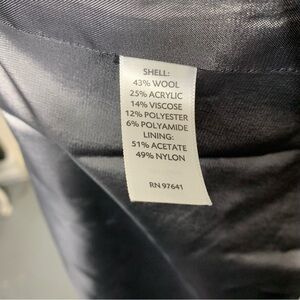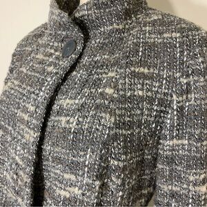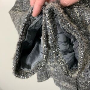 In excellent condition, beautiful well made and quality material, textured boucle wool. shade of grays and cream, A-line cut relax fit, side pockets button down, satiny lining. Please see pictures
