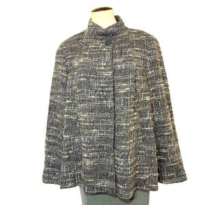 J jill tweed blazer jacket wool blend BGray Sz M Retro 60s Twee Classic