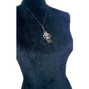 J#38 JNY Silver and Black Pendant Necklace with Colorful Gemstones
