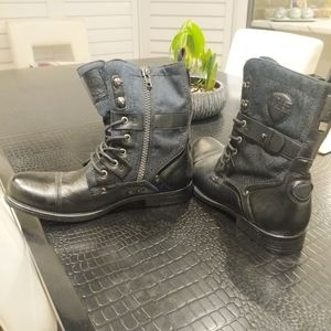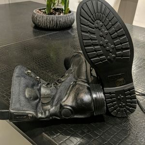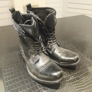Mid-Calf Lace-Up Military Boots in Cap Toe Design