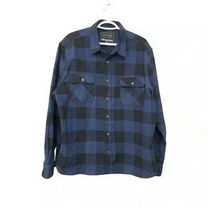 JACHS 100% heavy cotton flannel men’s button down shacket, blue and black plaid