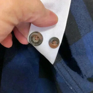This attractive flannel shirt is in like new condition. Two button pockets on the front. It is a well-made, quality piece of clothing.