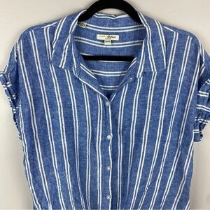 Jachs Girlfriend Blue White Striped Linen Blend Tie Front Shirt Medium