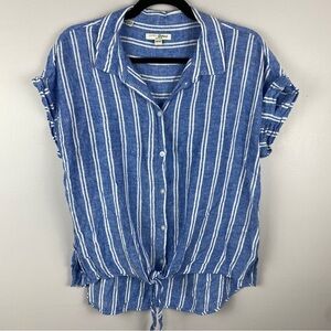 JACHS Girlfriend Blue White Striped Linen Blend Tie Front Shirt Medium