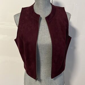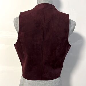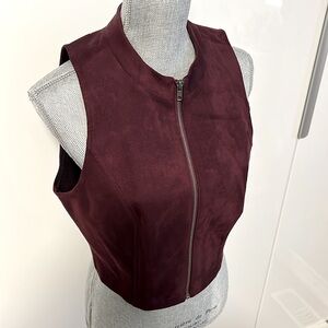 NWOT Burgundy vest in Faux Suede material. Cropped and fitted style with Mandarin collar. Front zipper. New never worn.