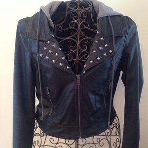 JACK BY BB DAKOTA MOTO JACKET This beautiful moto style jacket has awesome studded detail, a detachable hood and adjustable sides. Easily take any look from day to night with this beauty.