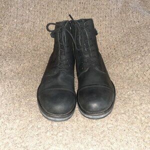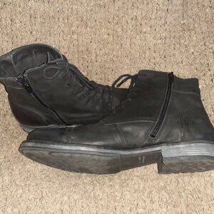JACK & JONES-Black Oiled Leather Ankle Boots-Side Zip-Lace Up-Sz 43/10-NWOB
