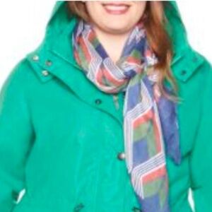 JACKET, RAIN, COLOUR: GREEN LAKE, SIZE 5X, HOOD, FRONT ZIP & SNAPS, FRONT POCKETS, LONG SLEEVES, STAND UP COLLAR, CINCHABLE WAIST, PENNINGTONS, TAG ON, NEVER WORN