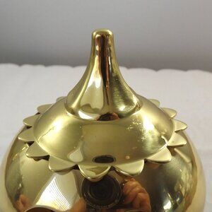 Add a touch of fun to your home with this gold pumpkin candle holder.