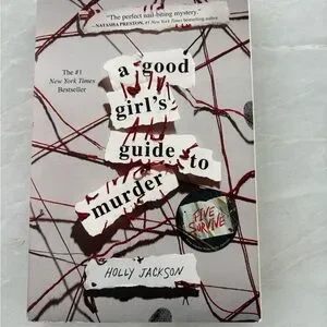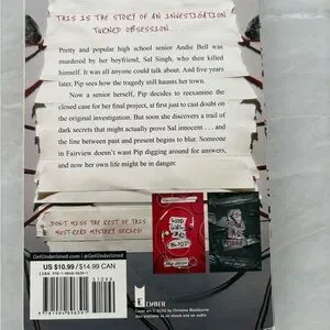 Paperback by JACKSON featuring torn paper text and red thread motif. Minimalist white background with striking red accents. Eye-catching thriller-themed cover art.