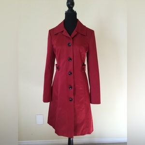 A beautifully tailored, minimalist trench coat from the iconic Canadian brand, Jacob. This piece features a sleek single-breasted front, offering a more modern and less bulky silhouette than a traditional double-breasted coat.