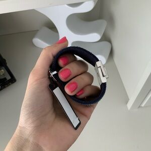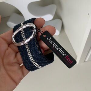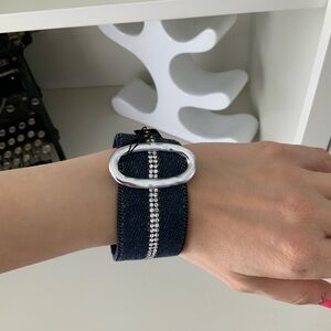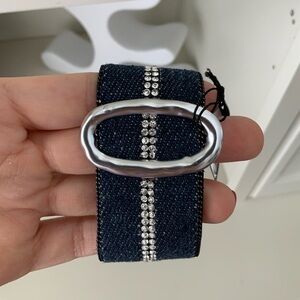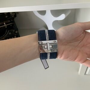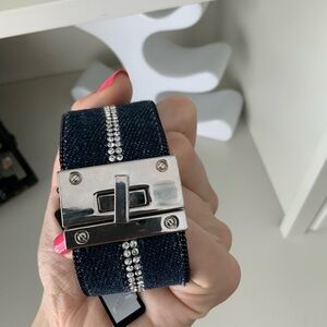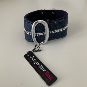 JACQUELINE KENT Denim Crystal Turn Lock Silver Statement Cuff Bracelet BRAND NEW