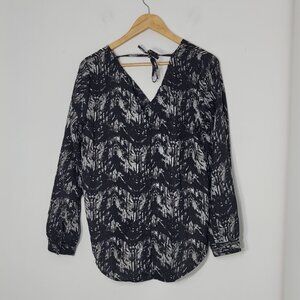 JACQUELINE de YONG Women's Black White Long Sleeve Button Front Blouse Size 40